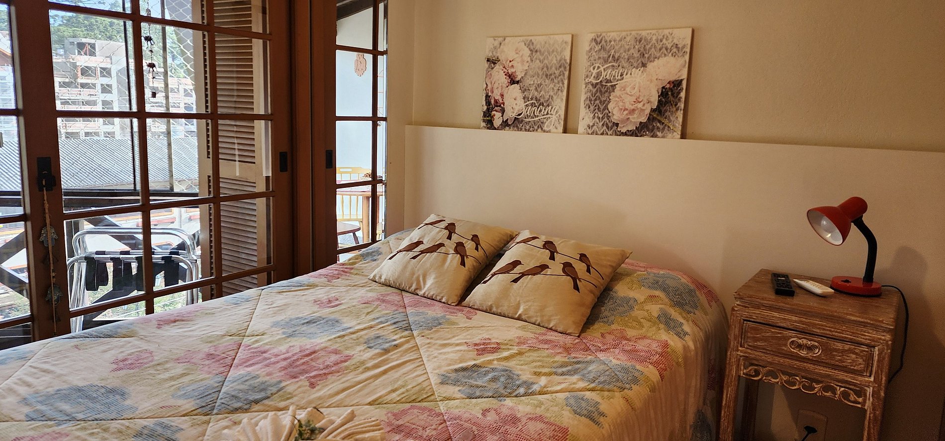 O apartamento possui:1 dormitório com cama de casal; Sala de estar com sofá-cama de casal; Banheiro completo; Cozinha equipada com utensílios e eletrodomésticos; Varanda fechada com vista para a cidade – perfeita para refeições ou um café ao entardecer.