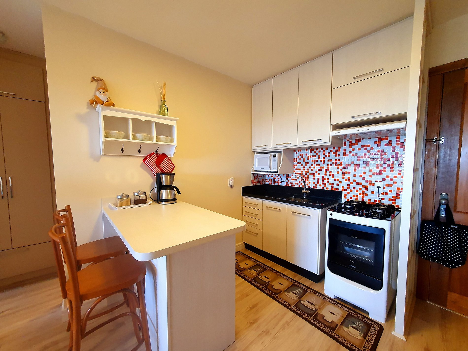 Apartamento muito bem equipado, localizado no centro de Gramado, ideal para até 4 pessoas. São 2 dormitórios aconchegantes, sala confortável com TV, Wi-Fi rápido, cozinha completa com todos os utensílios e eletrodomésticos, além de calefação em todas as peças e água quente em todas as torneiras. O apartamento é perfeito tanto para viagens de lazer quanto para home office ou home school.