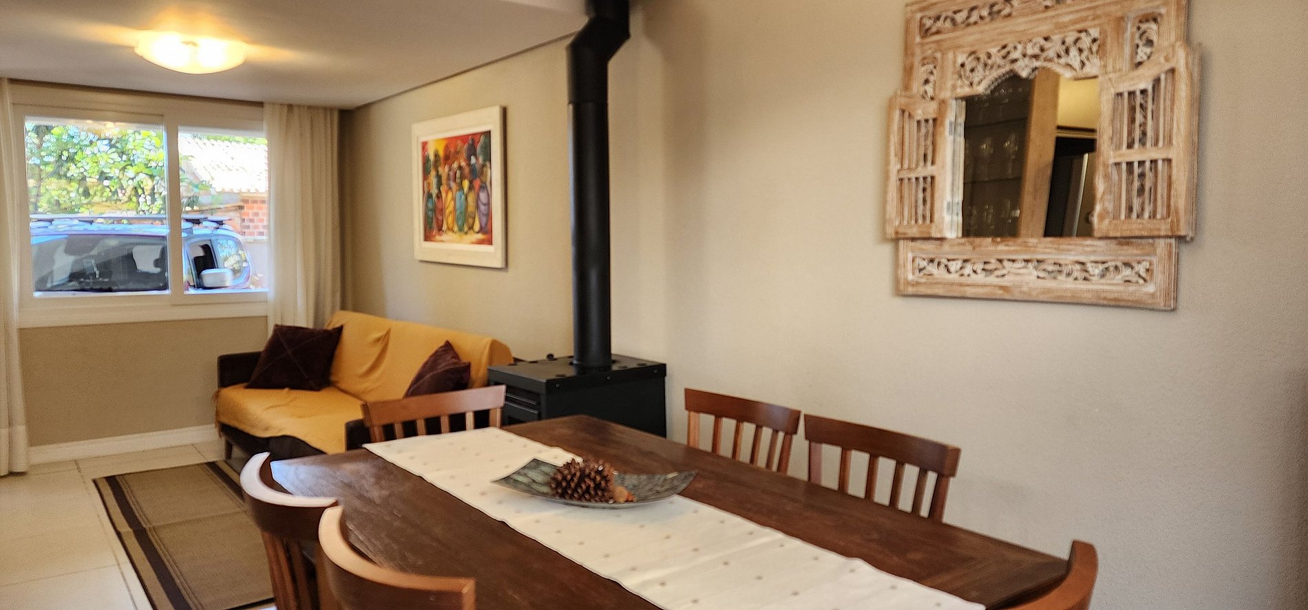 Imóvel confortável, super bem equipado e localizado, composto de 3 dormitórios, todos com TV smart, living 2 ambientes com lareira, 2 banheiros, cozinha equipada, lavabo, jardim de inverno e 2 vagas de estacionamento.